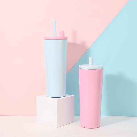 Tazas de viaje aisladas al vacío personalizadas con pajita taza de café portátil de doble pared de acero inoxidable botella de agua de 14oz
