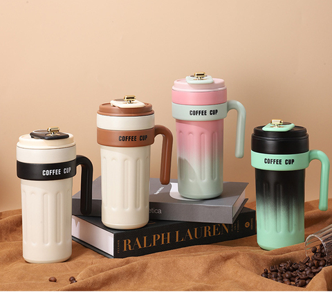 Oficina de viaje, taza de café para exteriores de alto nivel de apariencia, pantalla cálida de acero inoxidable 304, taza de agua de oficina con mango de gran capacidad